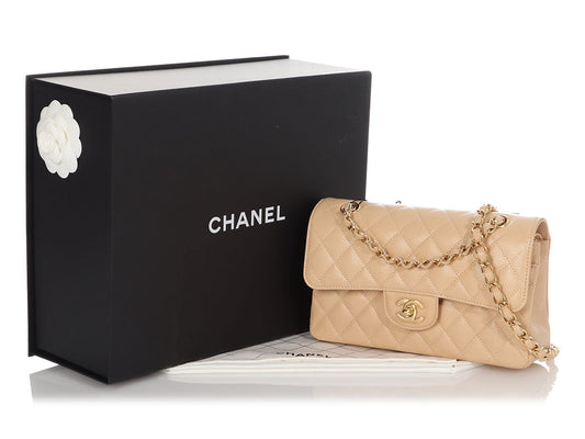 Chanel Small Beige Claire Quilted Caviar Classic Double Flap