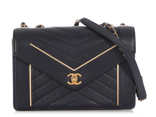 Chanel Navy Calfskin Reversed Chevron Envelope Flap Bag