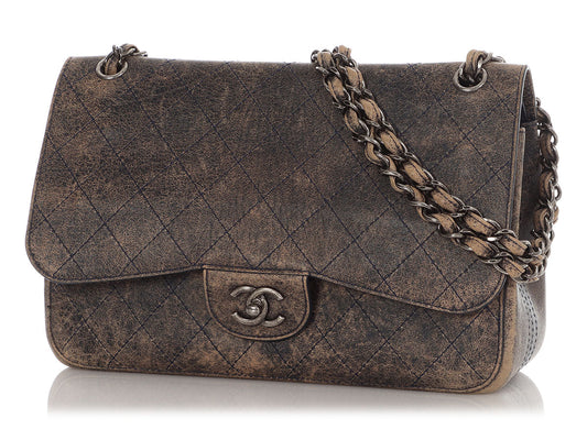 Chanel Jumbo Taupe and Navy Distressed Calfskin Paris-Cuba Classic Double Flap