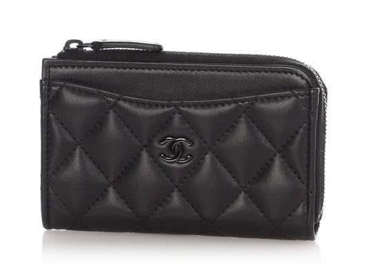 Chanel Black Quilted Lambskin Zip Around Card Holder
