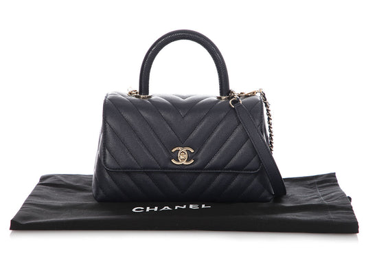 Chanel Mini Navy Chevron-Quilted Caviar and Lizard Coco Handle