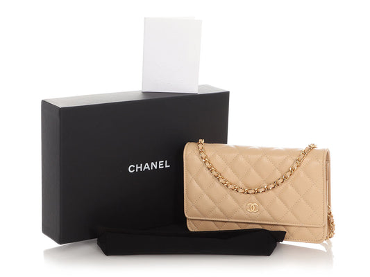 Chanel Beige Quilted Caviar Wallet on Chain WOC