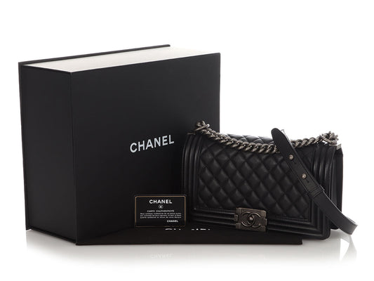 Chanel Old Medium Black Quilted Calfskin Boy