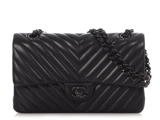 Chanel Medium/Large So Black Chevron-Quilted Lambskin Classic Double Flap