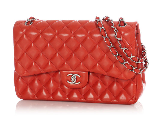 Chanel Jumbo Red-Orange Quilted Lambskin Classic Double Flap