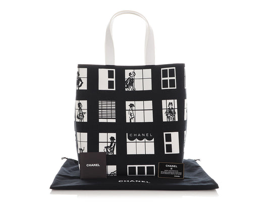 Chanel Black and White Canvas Coco Window Tote