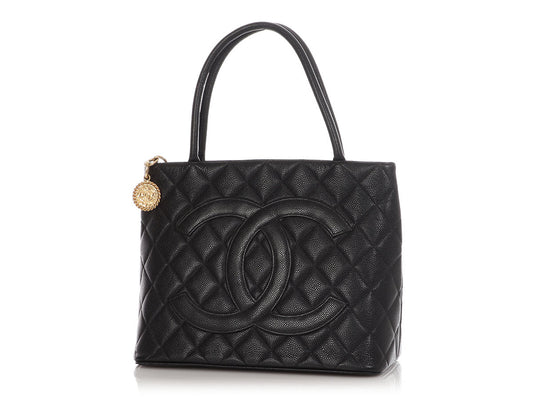Chanel Black Quilted Caviar Medallion Tote