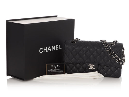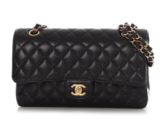 Chanel Medium/Large Black Quilted Caviar Classic Double Flap
