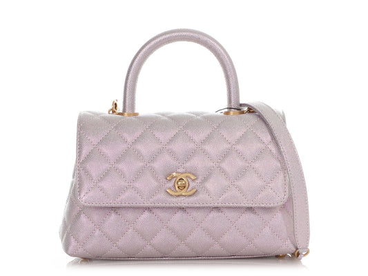 Chanel Mini Iridescent Lilac Caviar Coco Handle