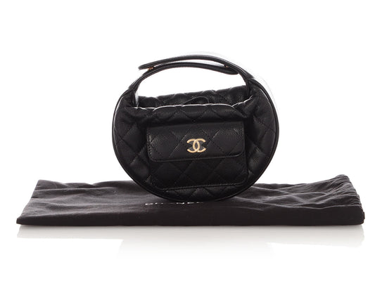 Chanel Black Quilted Caviar Mini Round Polly Pocket Pouch Hobo