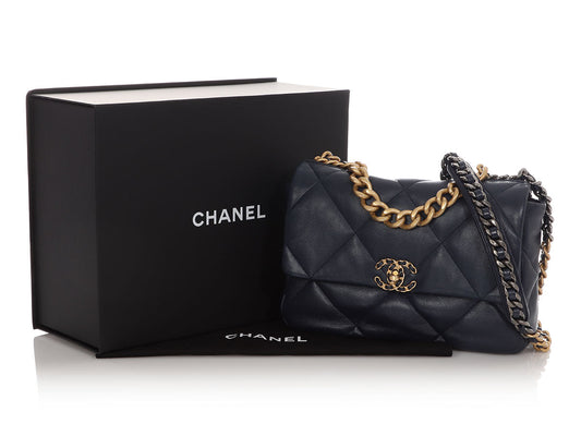 Chanel Large Navy Blue Quilted Calfskin 19 Flap