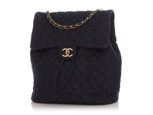 Chanel Navy Quilted Denim Urban Spirit Backpack
