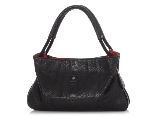 Chanel Black Python Expandable Yacht Hobo
