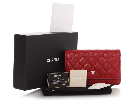 Chanel Red Quilted Caviar Wallet On Chain WOC