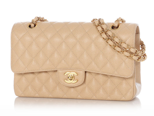 Chanel Medium/Large Beige Quilted Caviar Classic Double Flap