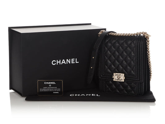 Chanel Black Quilted Caviar North-South Boy Bag