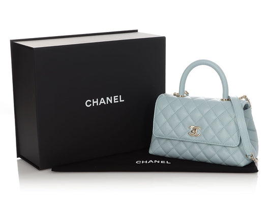 Chanel Mini Light Blue Quilted Caviar Coco Handle
