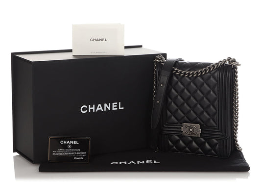 Chanel Black Quilted Lambskin North-South Boy Bag