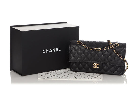Chanel Medium/Large Black Quilted Caviar Classic Double Flap