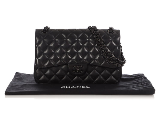 Chanel Jumbo So Black Quilted Lambskin Classic Double Flap
