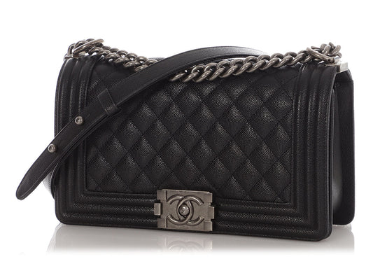 Chanel Old Medium Black Quilted Caviar Boy Bag