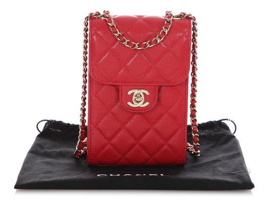 Chanel Red Quilted Caviar Classic Crossbody Phone Holder