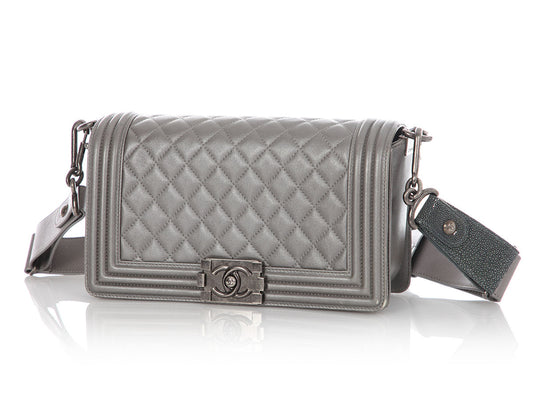 Chanel Old Medium Pewter Quilted Lambskin Boy Bag