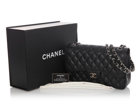 Chanel Jumbo Black Quilted Caviar Classic Double Flap