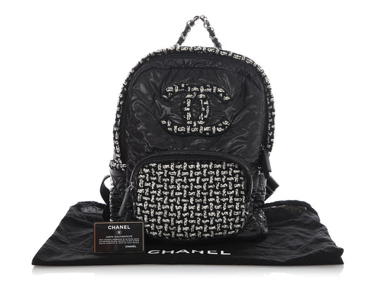Chanel Large Black Nylon and Tweed Backpack