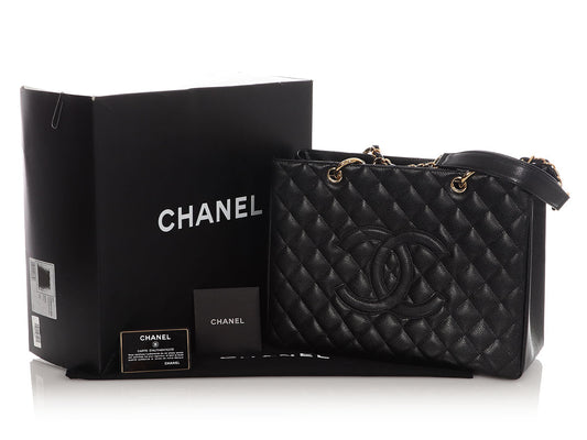 Chanel Black Quilted Caviar Grand Shopping Tote GST