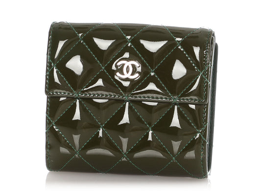 Chanel Green Quilted Patent L-Zip Pocket Wallet