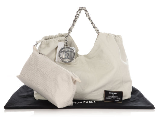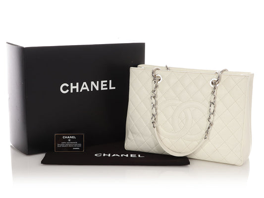 Chanel White Quilted Caviar Grand Shopping Tote GST