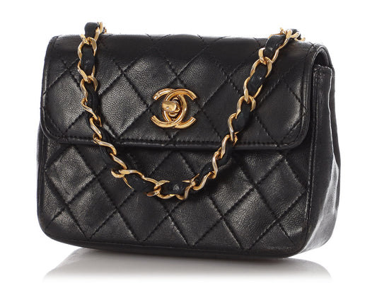 Chanel Vintage Extra Mini Black Quilted Lambskin Flap