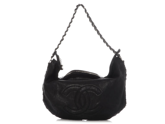 Chanel XL Black Distressed Calfskin Modern Chain Hobo