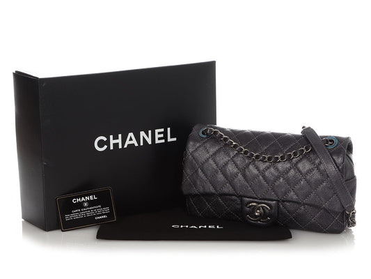 Chanel Argent Quilted Shiny Caviar Easy Flap