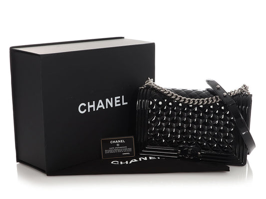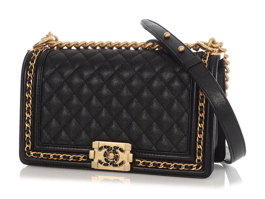 Chanel Old Medium Black Quilted Caviar Chain Around Boy
