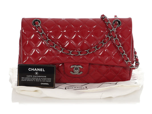 Chanel Small Red Chevron-Quilted Calfskin Rock The Corner Flap