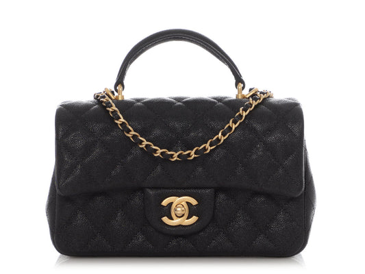 Chanel Mini Black Quilted Caviar Top Handle Flap