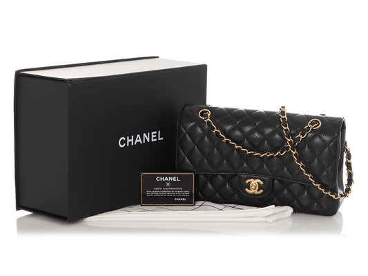 Chanel Medium/Large Black Quilted Caviar Classic Double Flap