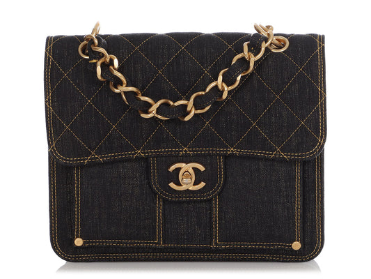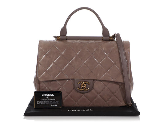 Chanel Medium Dark Gray Part-Quilted Caviar Gold Bar Top Handle Flap