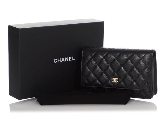 Chanel Black Quilted Caviar Wallet on Chain WOC