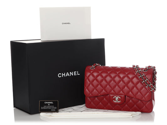 Chanel Jumbo Red Quilted Caviar Classic Double Flap