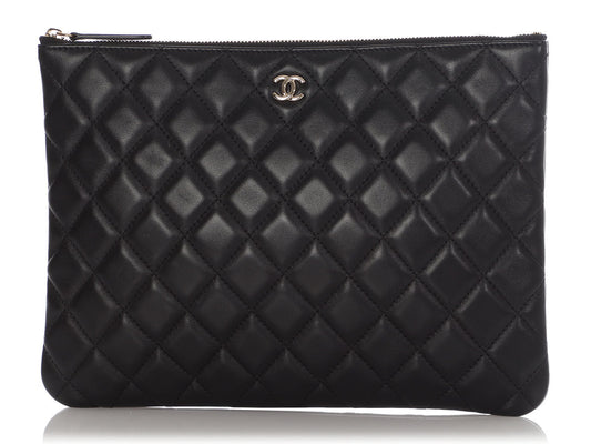 Chanel Medium Black Quilted Lambskin Classic O Case
