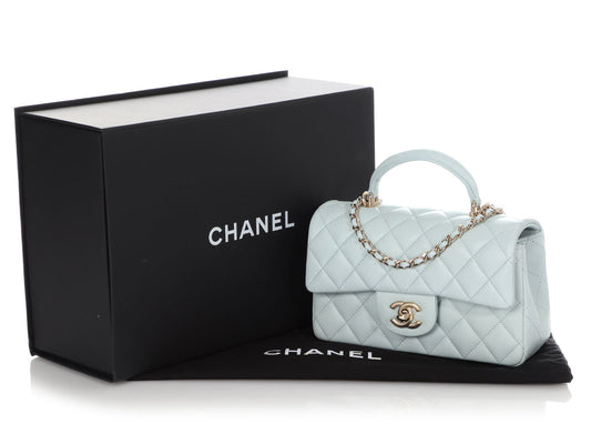 Chanel Light Blue Quilted Lambskin Mini Top Handle Bag