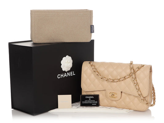 Chanel Jumbo Beige Quilted Caviar Classic Double Flap