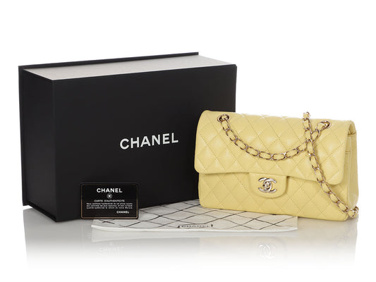 Chanel Small Light Yellow Quilted Caviar Classic Double Flap