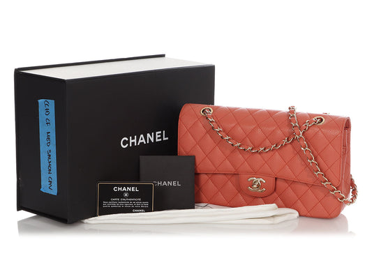 Chanel Medium/Large Salmon Quilted Caviar Classic Double Flap