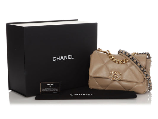 Chanel Small Dark Beige Quilted Lambskin 19 Flap