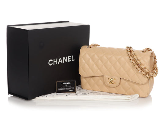 Chanel Jumbo Beige Clair Quilted Caviar Classic Double Flap