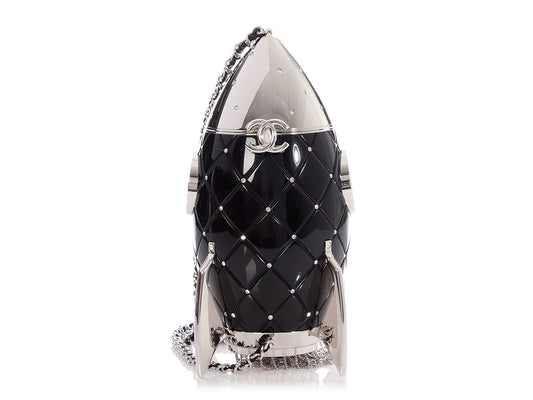 Chanel Long Black Beads, Pearls, and Crystal Logos Necklace